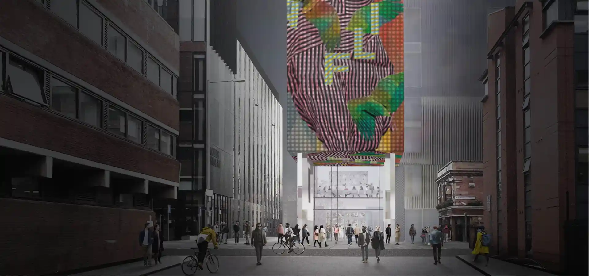Students arriving at university will be greeted by their own work, illuminated four storeys high on the side of a brand-new building. The year is 2021 and the this is SODA, an iconic building for Manchester’s future.